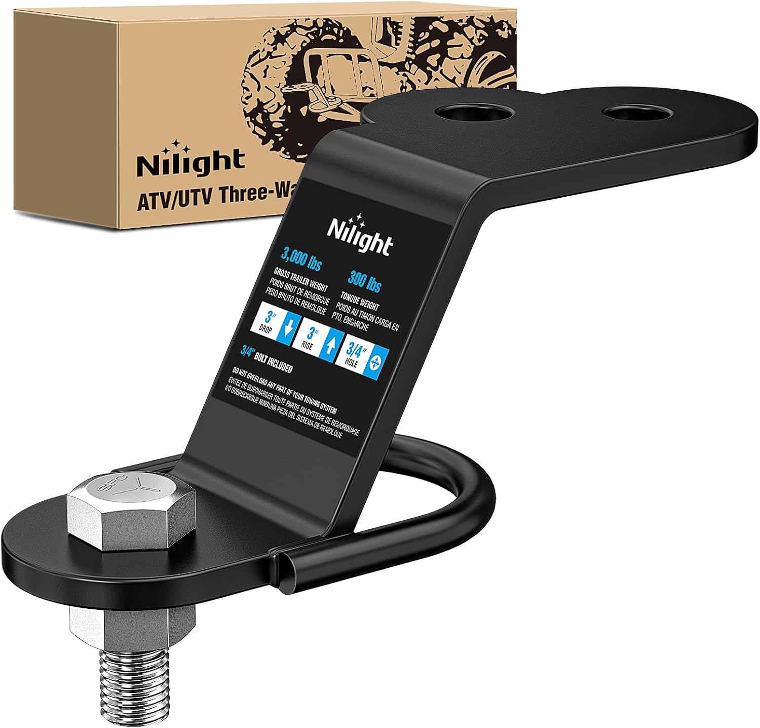 | Model | Nilight 3 in 1 ATV UTV Multi Hitch Mount with 2 inch Ball Hitch Rated 2000 LBS Fits 1-1/4 Inch Receiver |