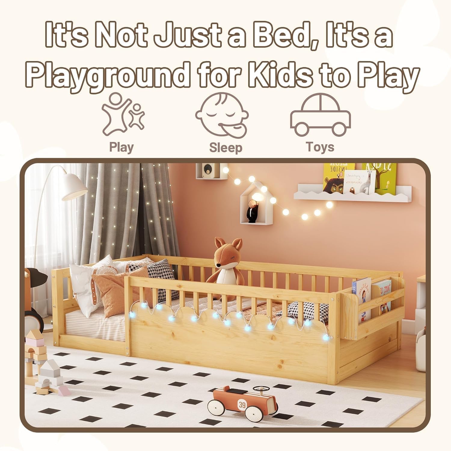 | Other Special Features of the Product | Enhanced Safety, Floor Bed with Light, High Guardrails, Low to Ground Design, Storage Shelf |