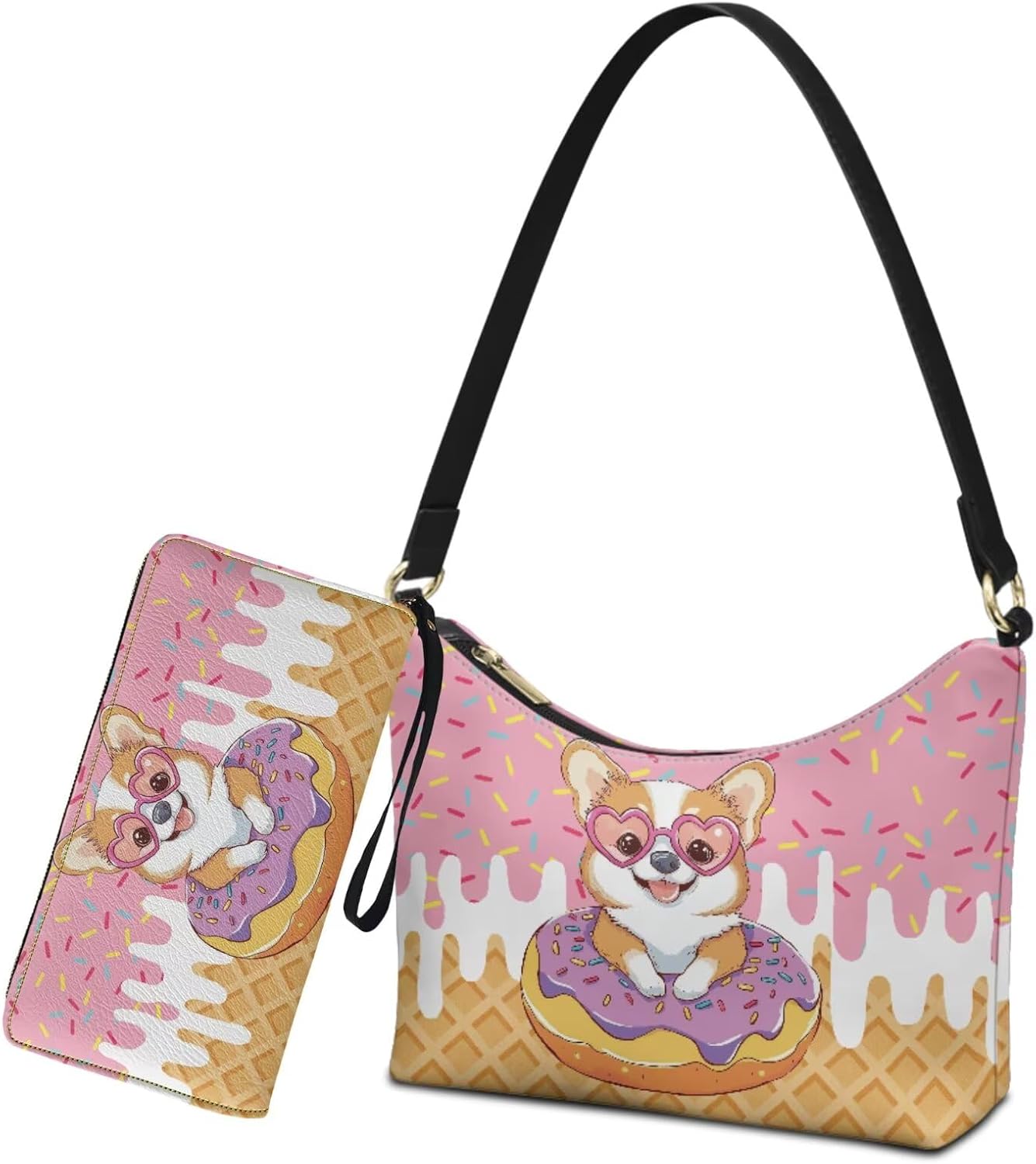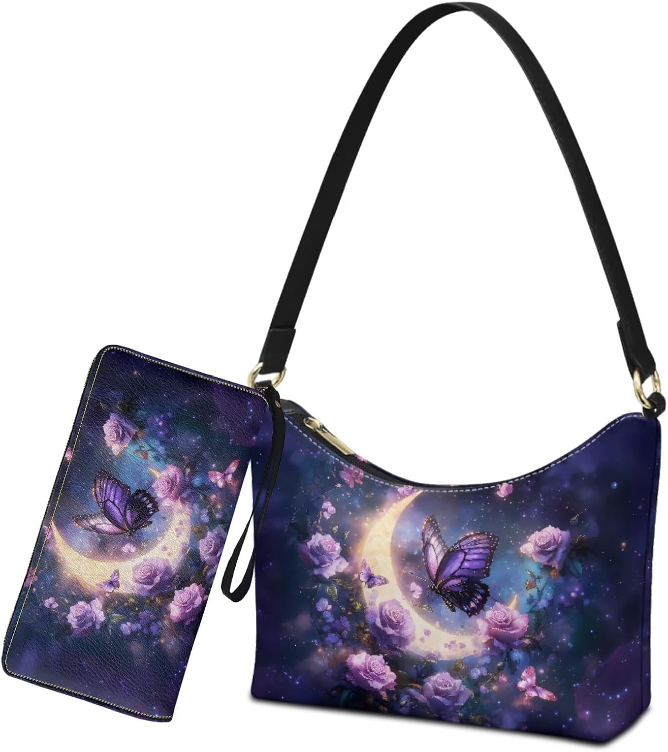Fashion & Durability: Our women's underarm bag and wallet are equipped with gold metal hardware, fine polyester lining, and smooth zippers, blending durability with exquisite elegance. Special Patterns Design: Our underarm bag and wallet set come in a variety of prints for your choice, such as flowers, hummingbirds, mushrooms, animals, etc, which can easily be paired with any outfit Occasions: Our underarm bag and wallet set effortlessly suit your various occasions, such as work, travel, shopping, gatherings, and leisure outings. Washing Method: Please do not bleach or wash directly with water. You can use a wet tissue to wipe it. Special Attention: According to different ways of measurement, please allow 1-2 cm error and a small color difference.